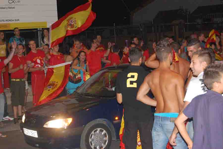 La alegría se desbordó en el Llano, donde se habían juntado algo más de1000 personas para festejar el triunfo de nuestra selección, y se extendió por las calles y fuentes de la localidad hasta la madrugada, especialmente en la fuente del parque de “las ranas”