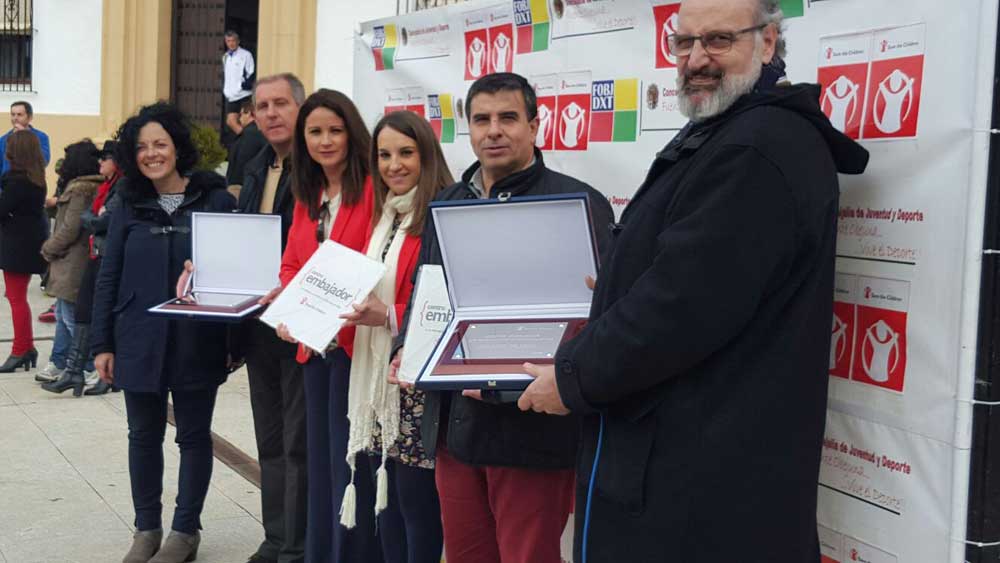 Representantes de Save the Children hicieron entrega de una placa como centro embajador a los responsables del IES Lope de Vega y al colegio San Carlos Borromeo por su participación desde hace ya seis años en la carrera por la paz.