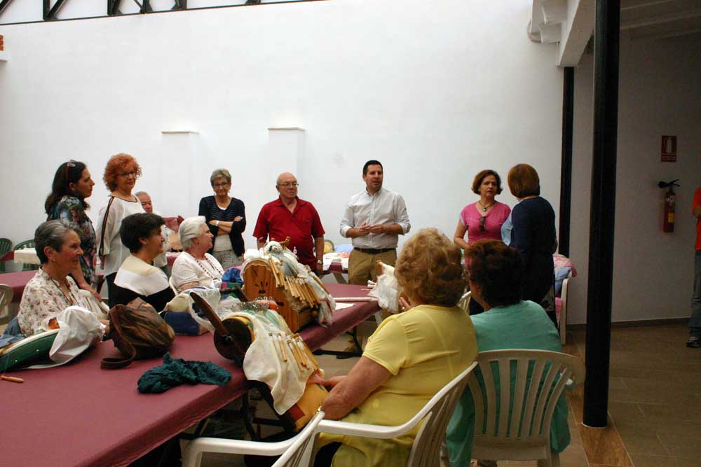 Comenzaron las labores y tanto José Ignacio como Dª Mariví Paterna se atrevieron a trabajar un ratito con los bolillos.