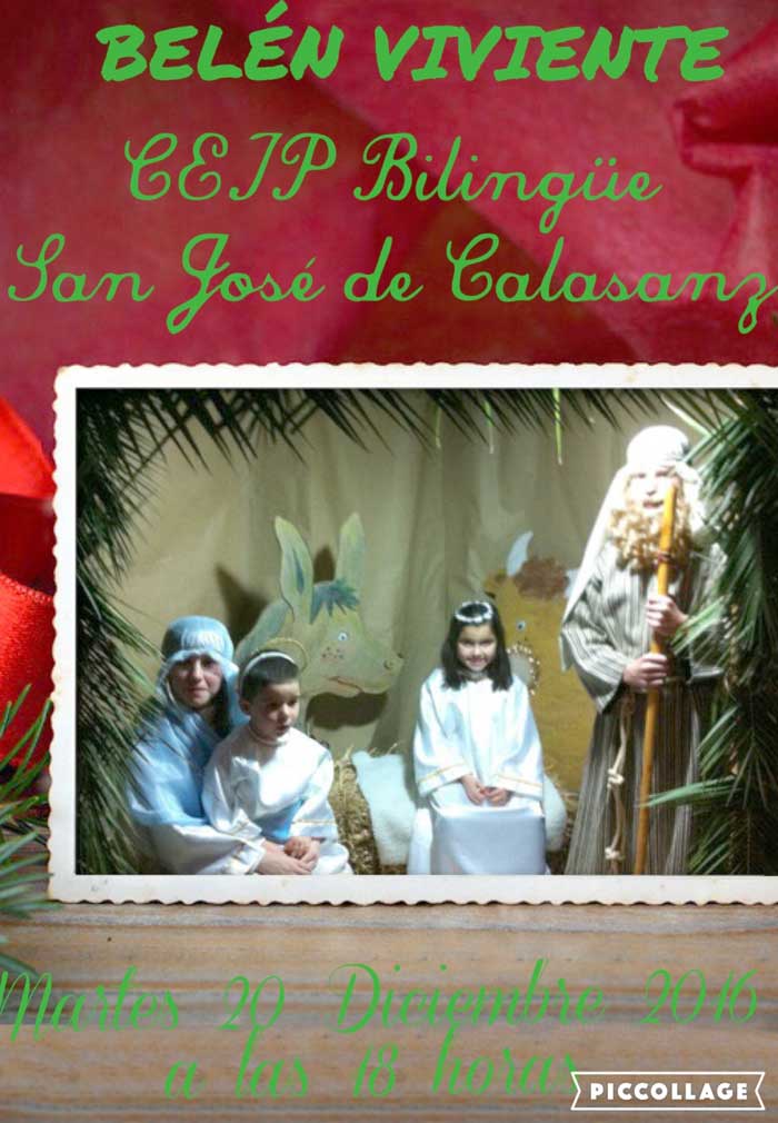 El martes 20 de diciembre, se celebrará en nuestro Colegio “San José de Calasanz”, el tradicional “BELÉN VIVIENTE”, que se viene desarrollando, cada dos años, coincidiendo con la llegada de la Navidad.