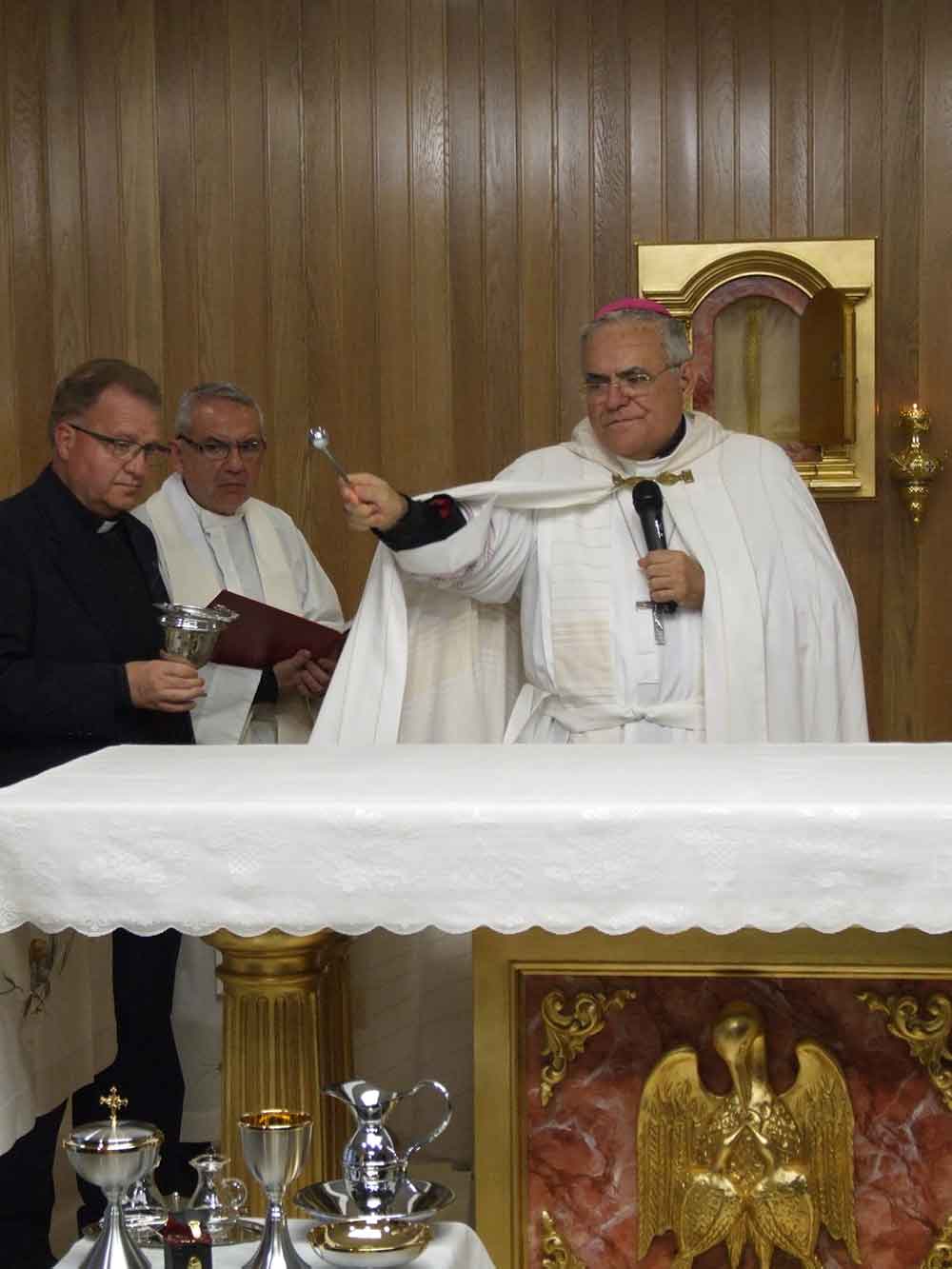El pasado día 31 a las siete de la tarde, Mons. Demetrio Fernández González, Obispo de Córdoba, visitó la Residencia de Ancianos Santa Bárbara de nuestra localidad. Tal visita estaba motivada por las modificaciones y modernizaciones que se han llevado a cabo en ella, así como las nuevas instalaciones. Después de recorrer les dependencias y departir un rato con los residentes, a los que escuchó con atención e impartió su bendición, se trasladó a la capilla en la que procedió a la bendición de todos los lugares relacionados con el culto. Dirigió unas palabras a los asistentes, empezando por agradecer la presencia de nuestras autoridades municipales, por su colaboración desde el Excmo. Ayuntamiento. Hizo mención a la importantísima misión de nuestra residencia en el cuidado y sostenimiento de nuestros ancianos, que son figura de Jesucristo. Agradeció, tanto a los profesionales como a los voluntarios, la colaboración en tal tarea, que han dado y están dando, siguiendo el camino del Amor que ha mostrado Jesucristo hacia los todos los hombres. Recordó también los inicios de la Residencia en tiempos del Párroco de Santa Bárbara, D. Pedro Crespo Hidalgo, sus fatigas y su encomiable lucha para llevar acabo la tarea de dotar a nuestro pueblo de una residencia para mayores. Tarea concluida. Una Obra Social de la Iglesia Católica para Peñarroya-Pueblonuevo.