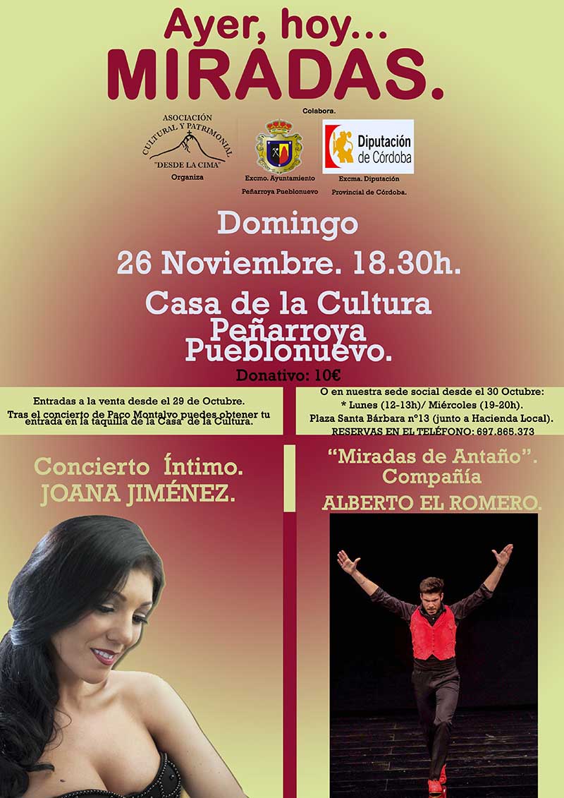 Con la participación de Joana Jiménez y la compañía de baile de Alberto el Romero. Domingo 26 de Noviembre (18.30h). Casa de la Cultura de Peñarroya Pueblonuevo