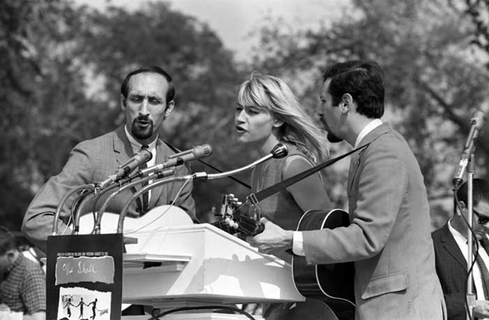 Canciones como “If I Had a Hammer”, “Blowing in the wind”, o “Where have at the flowers gone?”, impulsaron la protesta de los Movimientos a favor de los Derechos Civiles, y de todos aquellos ciudadanos obligados a coger un fusil para defender intereses que repugnaban a una inmensa mayoría.