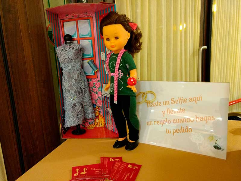 Se contó con la presencia de un venenciador de vino, del que pudimos disfrutar tanto de su arte a la hora de servir como del excelente vino que nos ofreció, el cual pudimos degustar junto a un exquisito jamón cortado magistralmente por el encargado de otra de las empresas expositoras. La presencia peñarriblense estaba representada por nuestra colaboradora Herminia Marcado que llevó hasta allí sus muñecas personalizadas de novia y madrina, las cuales hicieron las delicias de todas las personas que visitaron la muestra.