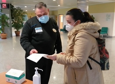 El responsable del Control de Acceso también vela por que las personas que esperan para acceder al edificio lo hagan en fila y respetando entre ellos la distancia de seguridad. También solicita la documentación que acredite su condición de paciente o acompañante. Del mismo modo, recuerda a las personas que accedan al centro que mantengan en todo momento puesta la mascarilla; que no utilicen guantes; que realicen frecuente higiene de manos; que evitan el posible contacto con superficies; que eviten transitar por el hospital si no es necesario para su asistencia; y que sigan las instrucciones del personal del hospital.
