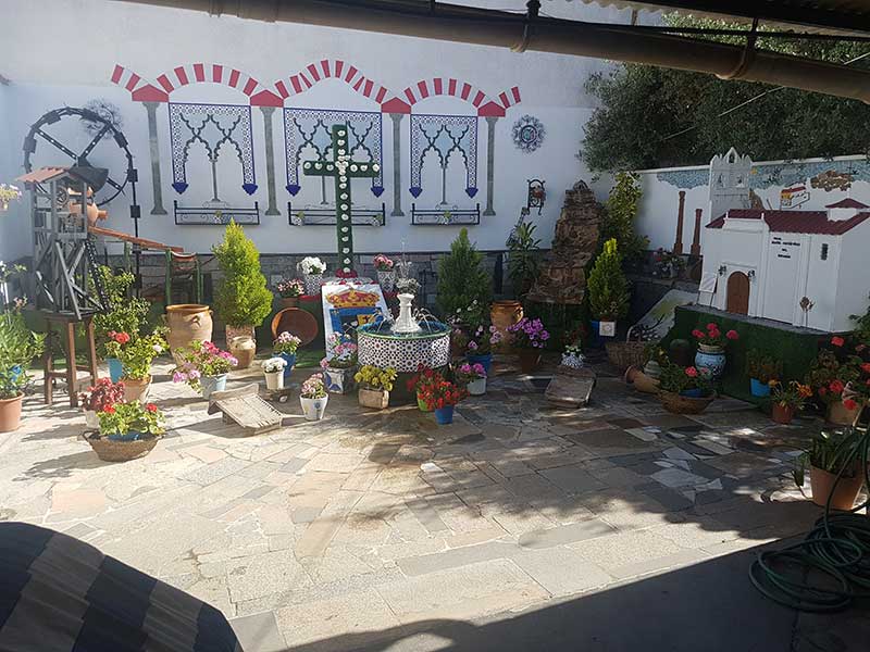 Un espacio andaluz repleto de objetos alusivos a este estilo de construcciones, con macetas de todo tipo (geranios normales y chinos, gitanillas, alegrías de la casa, rosas normales y de pitimini, petunias, claveles, clavellinas, etc.), fuente, cascada, noria, platos, azulejos, etc., digno de estar incluido como pieza central en un Museo de Usos y Costumbres, como el que desde hace años deberíamos tener en Peñarroya-Pueblonuevo donde a poco que se lo propusiera el o la concejal de cultura de turno, figurarían cientos de piezas, cientos de elementos ornamentales, muebles y enseres, que ahora esperan guardados o no, en domicilios particulares a que desde el Ayuntamiento decidan realizarlo y recepcionar legalmente las piezas que a buen seguro le irían llegando en cuanto se hiciera público el deseo de hacerlo y se viera una cierta seriedad en mantener dicho museo activo, que de hacerlo así y a la vista de las piezas conservadas de forma particular, sería uno de los mejores museos de la comarca e incluso de la provincia.