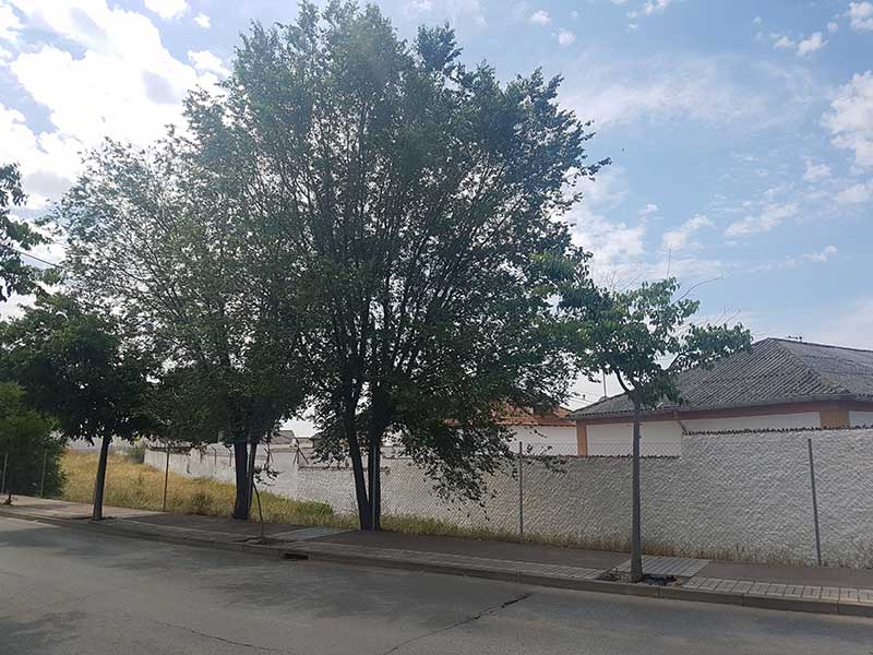 Dos de estos árboles han crecido en el terreno particular mencionado, junto a la acera del vial norte en su margen derecha con dirección hacia la antigua Estación de FEVE de Pueblonuevo del Terrible y el otro, está justo enfrente en el margen izquierdo, en terreno municipal fuera de la acera del vial junto a una gran arqueta de evacuación de agua de lluvia.
