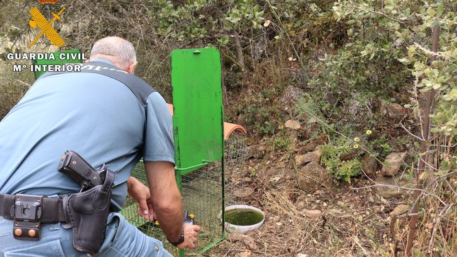 El Servicio de Protección de la Naturaleza de la Guardia Civil (Seprona) de Peñarroya-Pueblonuevo ha investigado en La Granjuela a una persona por la utilización de una jaula trampa y dos cepos metálicos para la captura de depredadores en el medio natural, utilizando como cebo un gallo vivo.