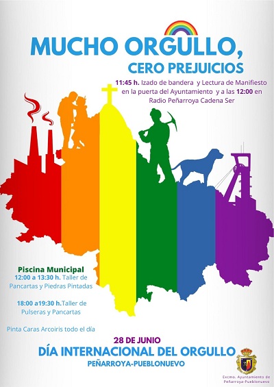 Con el cartel ganador se van a promocionar las diferentes actividades organizadas por el consistorio peñarriblense con motivo de la conmemoración del Día internacional del orgullo LGTBi, que se celebra el próximo día 28 de junio. Concretamente, se va a llevar a cabo el izado de la bandera arcoiris y la lectura del manifiesto a las puertas del Ayuntamiento, un programa de radio en Radio Peñarroya Cadena Ser, así como una serie de talleres que se van a desarrollar en las instalaciones de la piscina municipal, tales como taller de pancartas y piedras pintadas, taller de pulseras y pancartas, y taller de pintacaras arcoiris.