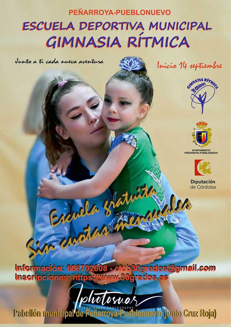 Gimnasia Rítmica 30 Grados es el Club que gestionará la Escuela Deportiva, una Escuela que se ha convertido a lo largo de los años de gestión del Club en el referente de la formación en Gimnasia Rítmica a nivel comarcal y de la zona norte de Córdoba. El Club cuenta con técnicos deportivos especialistas en Gimnasia Rítmica para poder hacerse cargo de las sesiones, los recursos materiales específicos para ofrecer una enseñanza con calidad y seguridad, y un proyecto deportivo que busca progreso y mejoras.