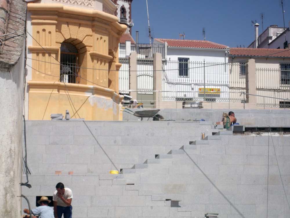 Mati, soy estudiante de 5º de Historia del Arte (me queda una asignatura) y se bastante de conservación porque además de formar parte de mi carrera es un tema que me interesa mucho, y creeme, lo que están haciendo es una mamarrachada. Para respetar el Monumento lo mejor que podían haber hecho es respetar sus barandas originales restaurándolas, que a ti pueden parecerte para una película de terror, pero son las originales y en estos casos se trata de mantenerse lo más fiel posible al original, porque estamos hablando de una restauración no de una construcción. El granito con corte industrial no lo he visto yo nunca en los campos de Fuente Obejuna y a principios del siglo XX no se podía cortar de esa manera, además se mancha como una camisa blanca. No queramos defender lo indefendible.