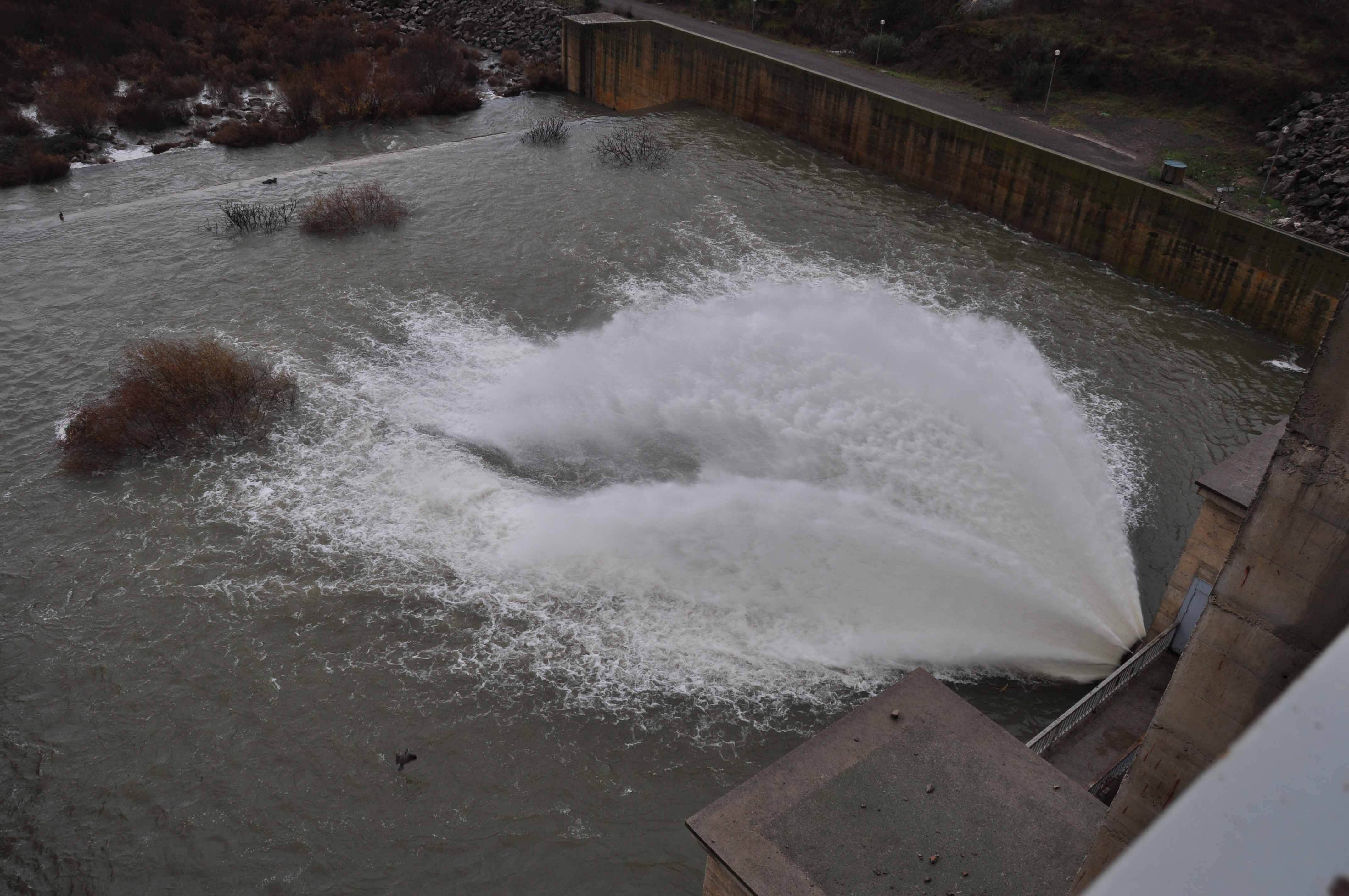 En la foto vemos el grandioso chorro de agua continuo para desembalsar la gran cantidad de liquido que le entra.