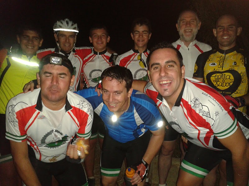 Una espléndida noche con luna llena de fondo y una temperatura inmejorable, pudieron disfrutar los doce participantes (once socios del club) que realizaron la Marcha Nocturna organizada por la Peña Ajierropartío. La actividad comenzó a las 10 de la noche saliendo desde Villaharta por la carretera de Pozoblanco hasta el Río Guadalbarbo. En estos primeros momentos, reagrupándose continuamente y bajando a una buena velocidad, el grupo se adaptaba a la oscuridad ya que sólo se contaba con dos linternas. Ya en el camino de los Murillos comenzaron las bromas y chistes que no acabaron hasta el final de la ruta. A mitad de camino, un poco antes de la parada para comer, se produce una avería mecánica grave que hizo que tuviéramos que llamar al coche escoba para recoger la bicicleta. En la espera tuvimos una visita breve e inesperada de la benemérita tras lo que continuó el buen ambiente animado por las risas contagiosas del Presi y de Mora y los chascarrillos o anécdotas contadas, como la de los ocho bocadillos que el Gaitero tenía preparados para ir a subir el Veleta. De nuevo en marcha, todos se abrigan para la bajada hasta el río. En el último tramo, todo de subida, el grupo se fragmenta en dos y se disfruta del sonido nocturno del campo.