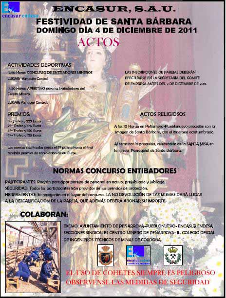 La Festividad de Santa Bárbara, titular de la Parroquia del mismo nombre en Peñarroya-Pueblonuevo, aparte de ser el motivo de que el 4 de diciembre se fiesta local, es también el día elegido por el colectivo minero desde hace algunas décadas, para procesionar con su patrona Santa Bárbara por las calles del centro de la localidad y realizar una vez más el tradicional concurso de Entibadores, oficio de proteger los túneles o galerías de las minas con troncos de madera, perdido con la modernización de los materiales empleados para tal fin y por supuesto con el cierre del Pozo María, último pozo en explotación en la cuenca minera del Guadiato.