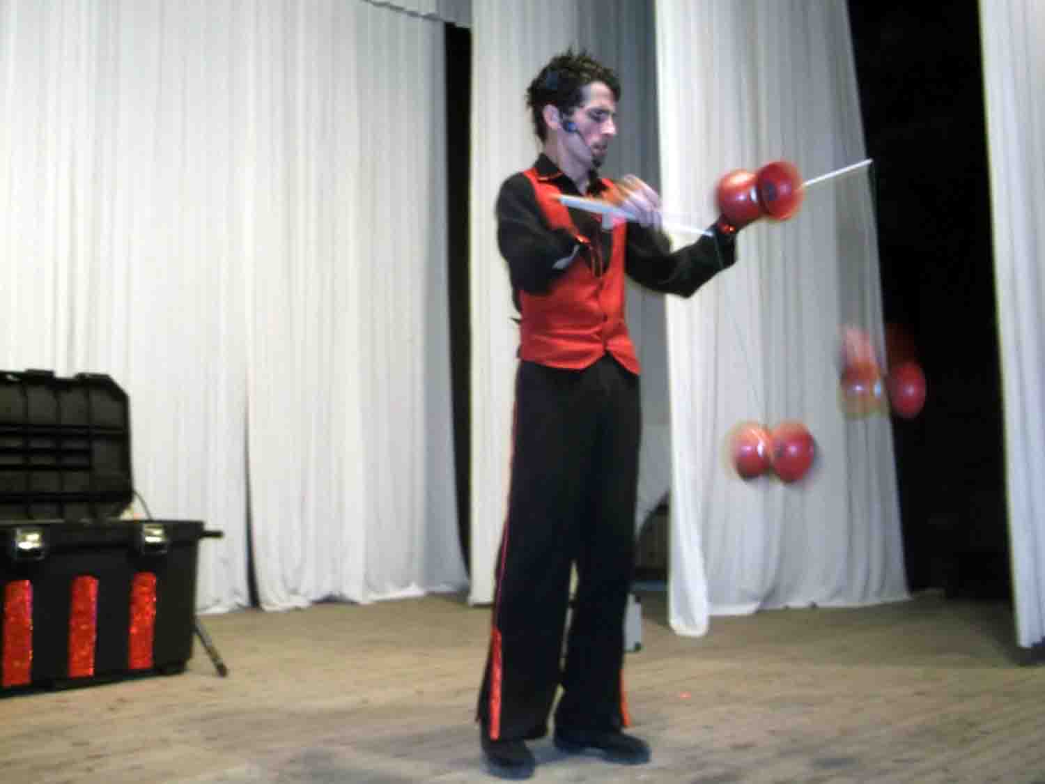 Manolo Carambolas es un joven personaje polifacético que trabaja la interpretación y dirección, el mimo clown, el teatro de calle, la acrobacia aplicada al teatro, la globoflexia, el teatro de creación de personajes, electro boogie (Breakdance) así como la puesta en escena con mazas y espectáculos circenses.
