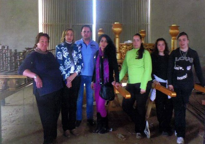 En la foto se puede ver a la alcaldesa, Pepi Soto, y el Concejal de Festejos, José Ramón Vargas, junto a una representación de la Junta Directiva y la Hermana Mayor de la Hermandad, Mª José Díaz Ramírez, en la visita realizada al local donde la Hermandad de Ntro. Padre Jesús Nazareno, Cristo del Amor y Virgen de las Angustias preparan los tres pasos que salieron en procesión el jueves santo en Villaviciosa de Córdoba.