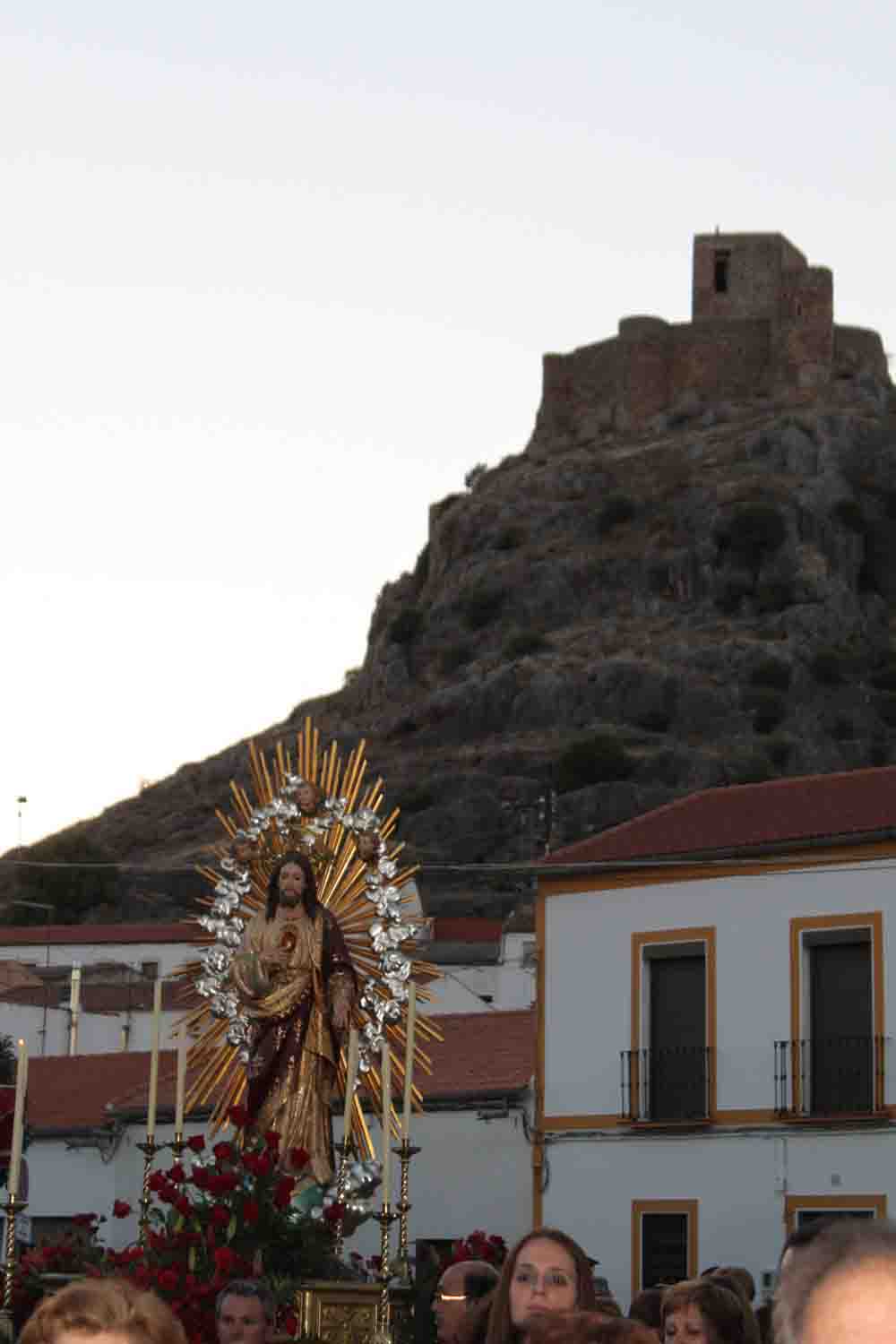 El Sagrado Corazón de Jesús procesionó el pasado sábado por las calles de nuestro municipio, realizando un recorrido por la Calle Santa María, Tesoro, San Antonio y Calle Córdoba, acompañado por la Banda Municipal de Música, el Párroco, la Alcaldesa, Aurora Rubio y la Concejala de Cultura y Festejos, Aurora Alcalá.