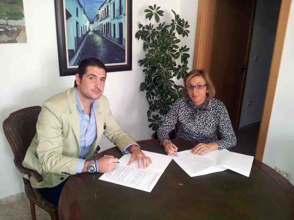 Pepi Soto y Alberto R. Muñoz firmando el convenio