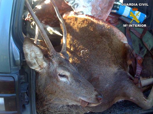 Tras parar el vehículo e identificar a sus ocupantes, que resultaron ser dos vecinos de Córdoba, la Guardia Civil procedió a efectuar un registro superficial del turismo, localizando en su interior dos ciervos despiezados y dos escopetas.