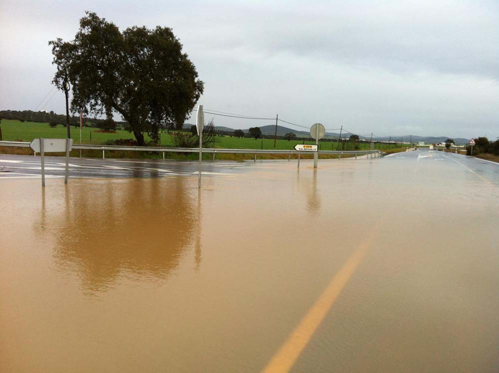 Las lluvias caídas a lo largo de estos días causaron el desbordamiento de varios cauces de arroyos de la localidad guadiateña de Los Blázquez lo que provocó el corte de la carretera A-3277 a la altura del cruce de Los Blázquez a Valsequillo.