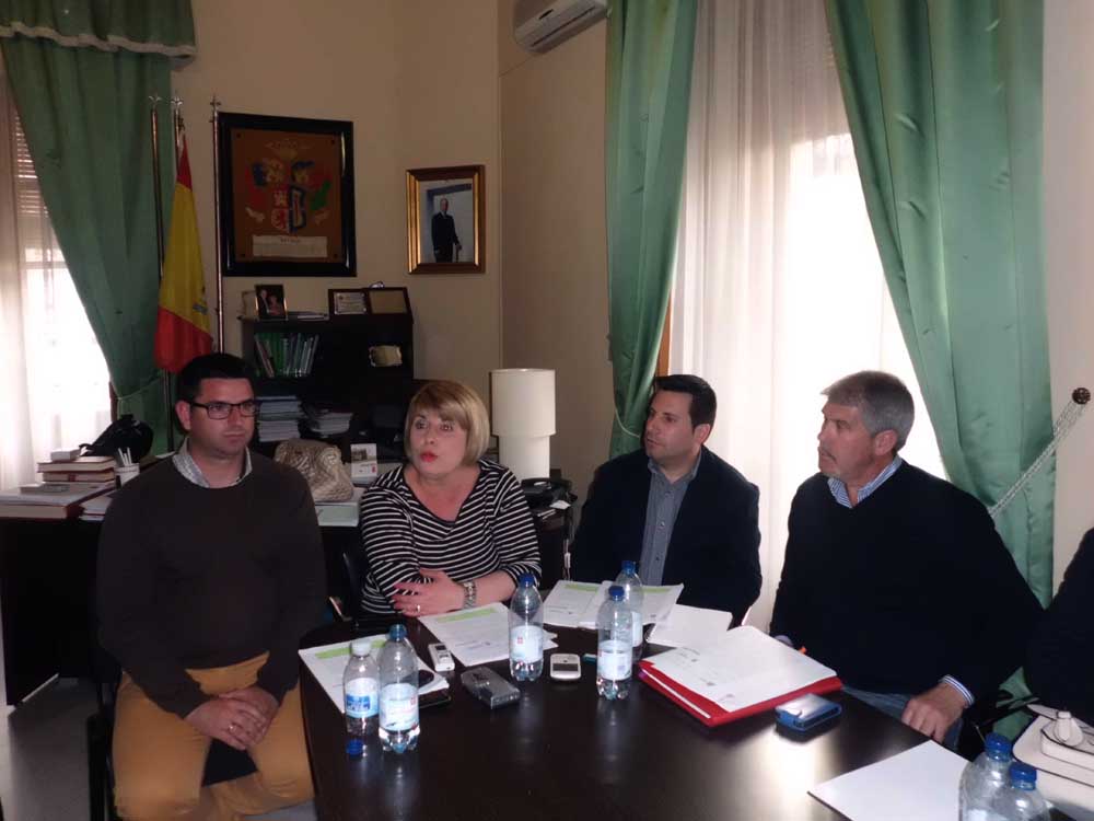 La alcaldesa belmezana, Aurora Rubio (IU), ediles de su grupo, y ediles del PSOE, acompañados por el coordinador principal de IU, Pedro García, y José Ignacio Expósito como representante de la ejecutiva provincial del PSOE analizaron la misiva enviada desde el Miner.