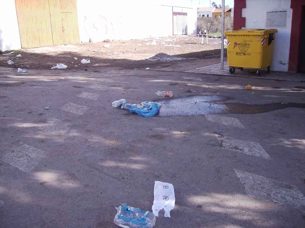 Hoy jueves 6/2/14 después de pasados 5 días de la celebración de la candelaria aun continua la BASURA dejada por los marranos en la explanada frente a la calle Málaga