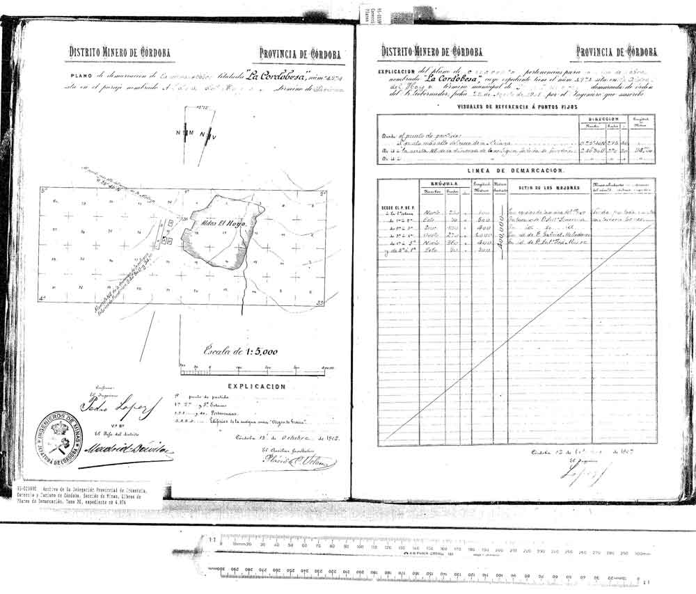 Plano Mina La Cordobesa, demarcada en 1.901, debajo Plano Mina Virgen de Gracia